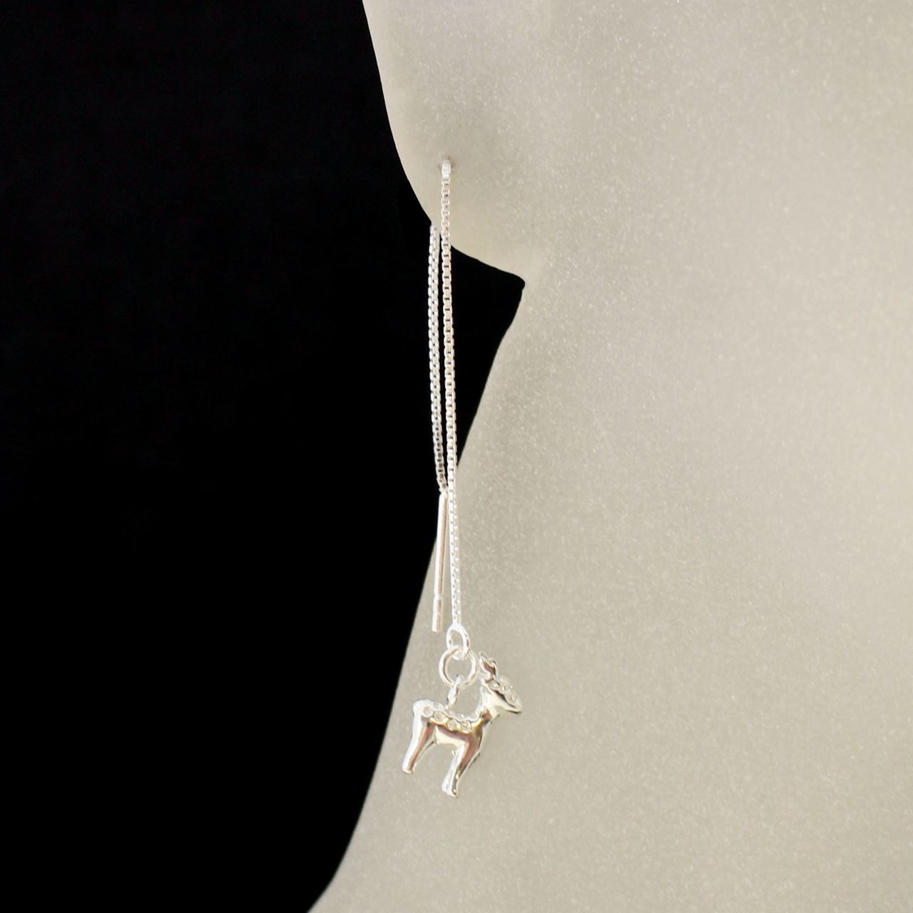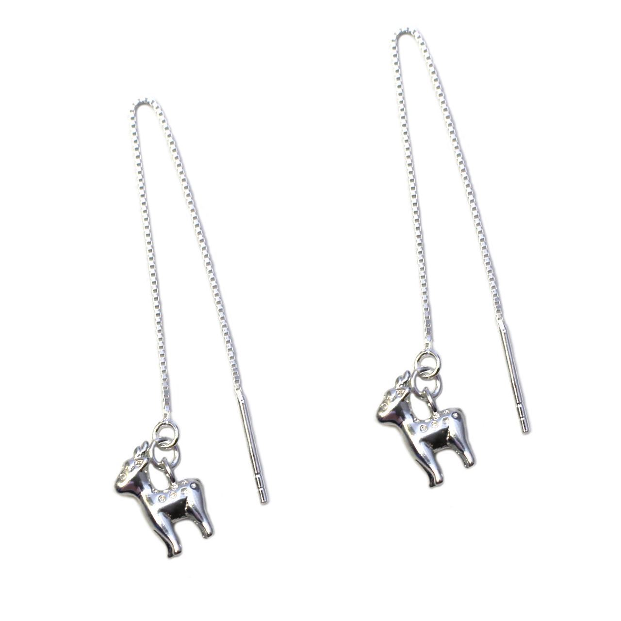 Sterling Silver Christmas Reindeer Charm Threader Earrings (Sold Per Pair)