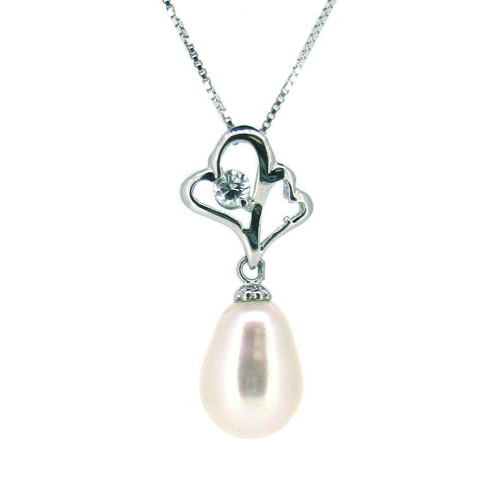 A teardrop shaped white pearl dangles below a sterling silver hearts and cz stone pendant. This necklace is the perfect accessory for any bridal party or the perfect birthday gift, especially for June birthdays.