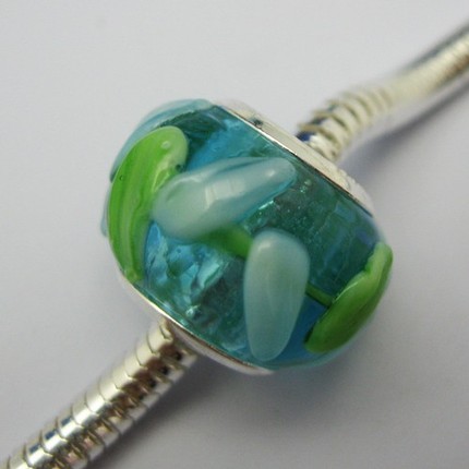 This listing is for 1 piece of sterling silver,glass,smooth donut shape pandora style bead with colorful design.