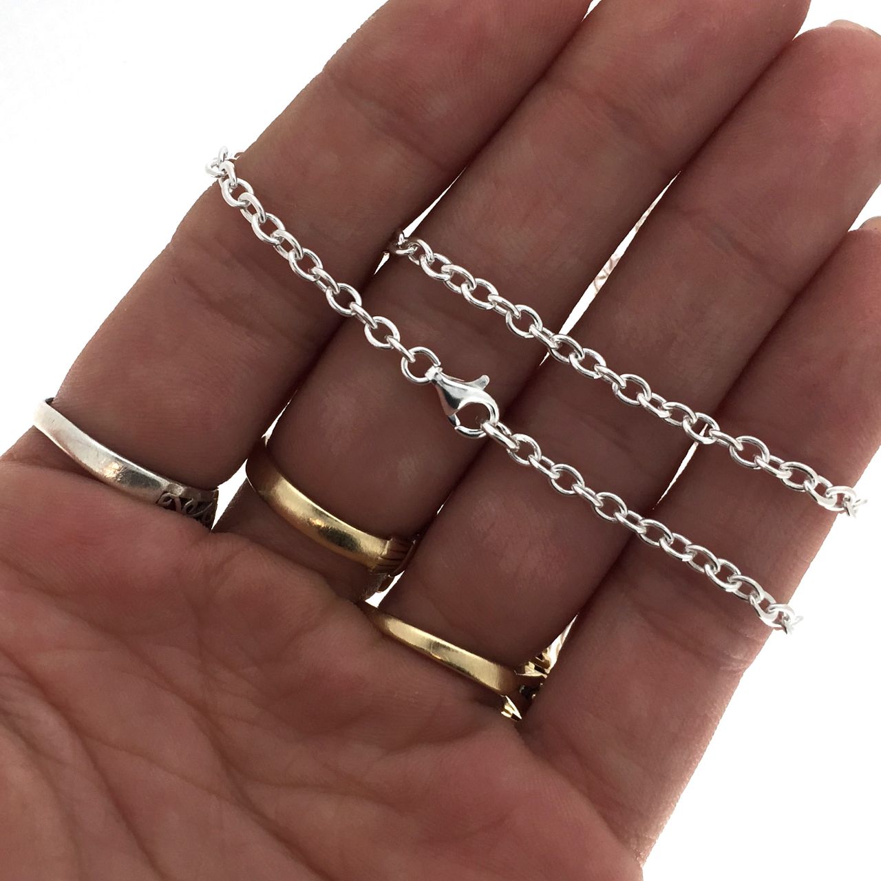 Add to compare list Sterling Silver Bulk Chain - 1.3x2mm Small Round Cable Chain (sold per foot) SKU : 101020 2mm long by 1.3mm wide 18 links per inch Log In for Wholesale Prices