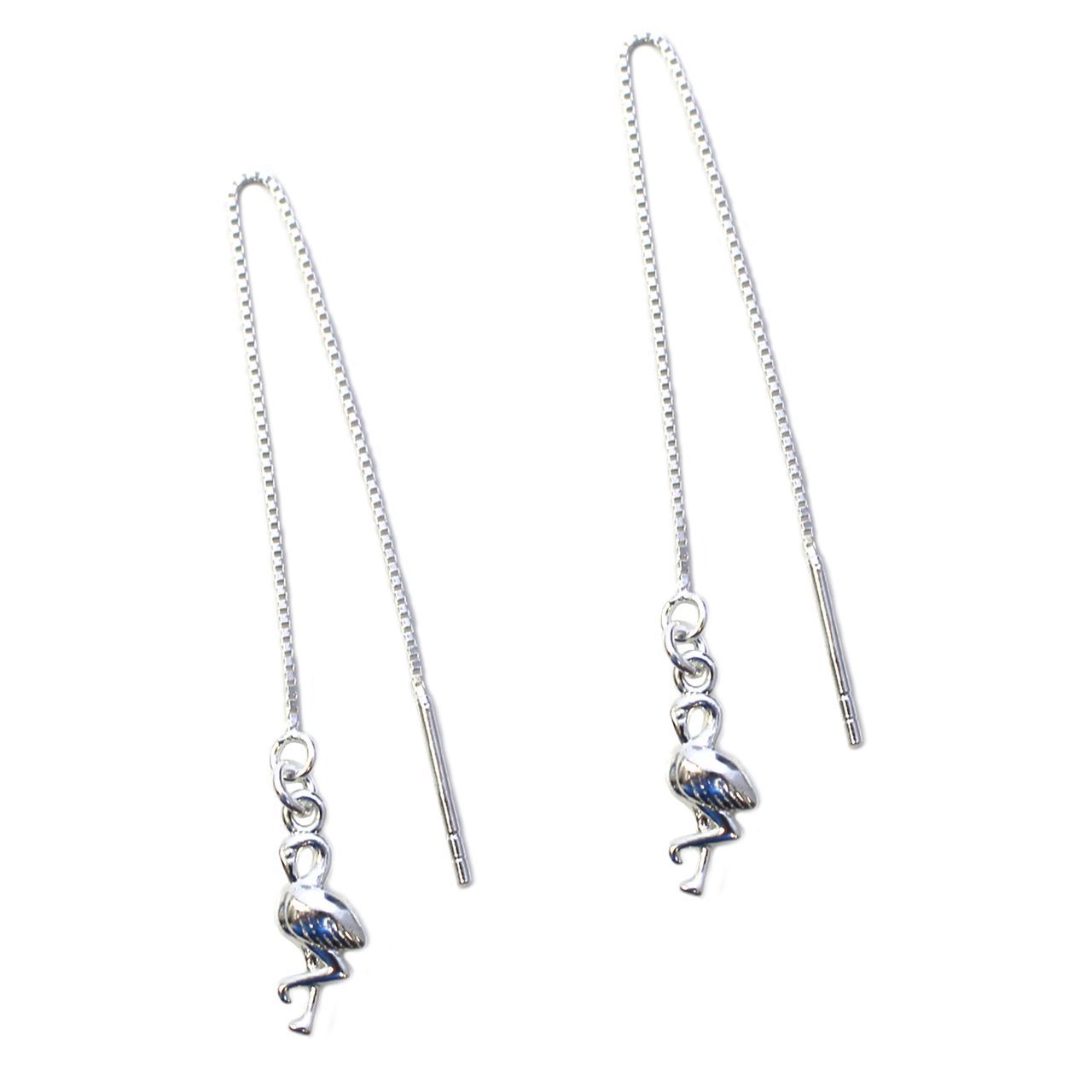 Sterling Silver Flamingo Charm Threader Earrings (Sold Per Pair)