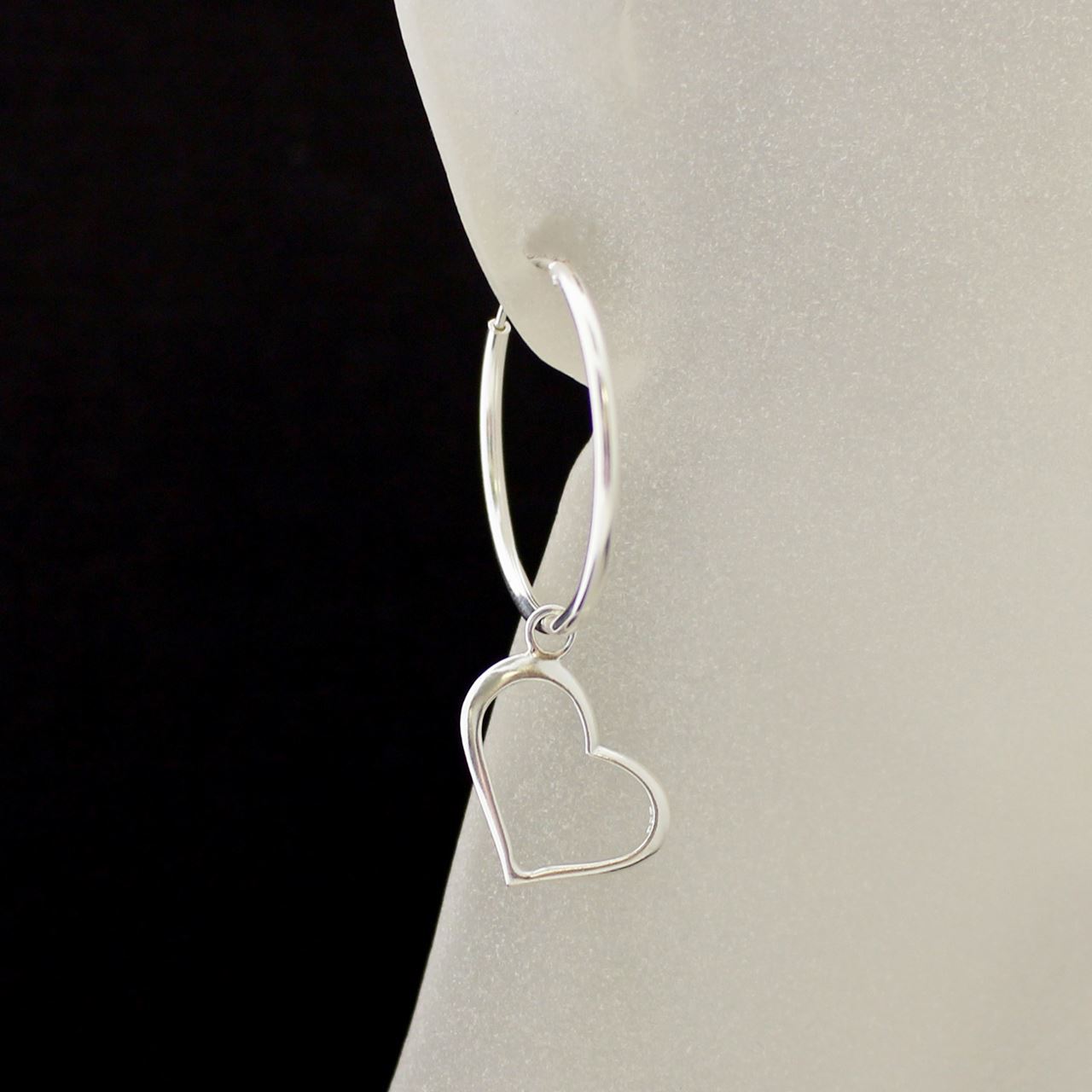 Custom wishlist OK Add to wishlist Add to compare list Gold Over Sterling Silver Heart Charm Hoop Earrings-25mm (Sold Per Pair) SKU : AZ03009-VM $12.00 Add to cart