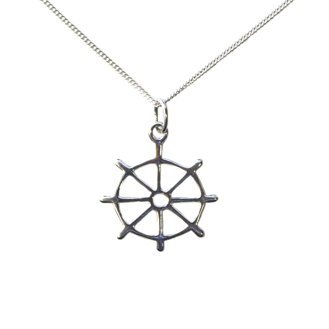 Sterling Silver Nautical Boat Wheel Charm Necklace - 16"