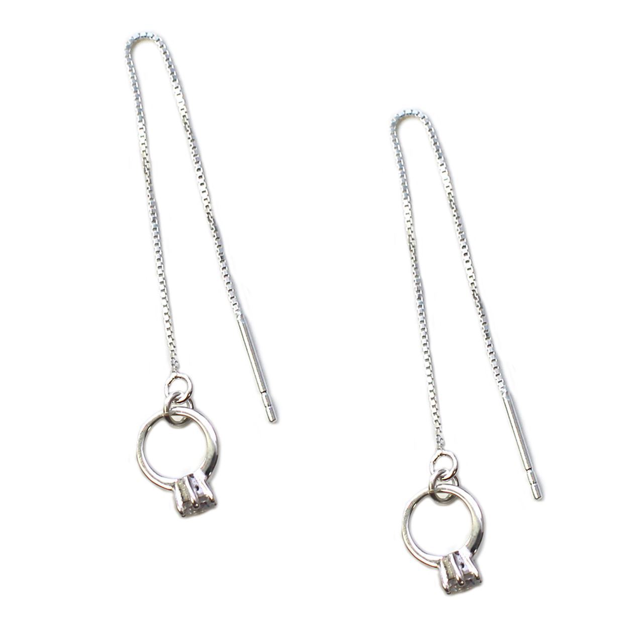 Sterling Silver Promise Ring Charm Threader Earrings (Sold Per Pair)