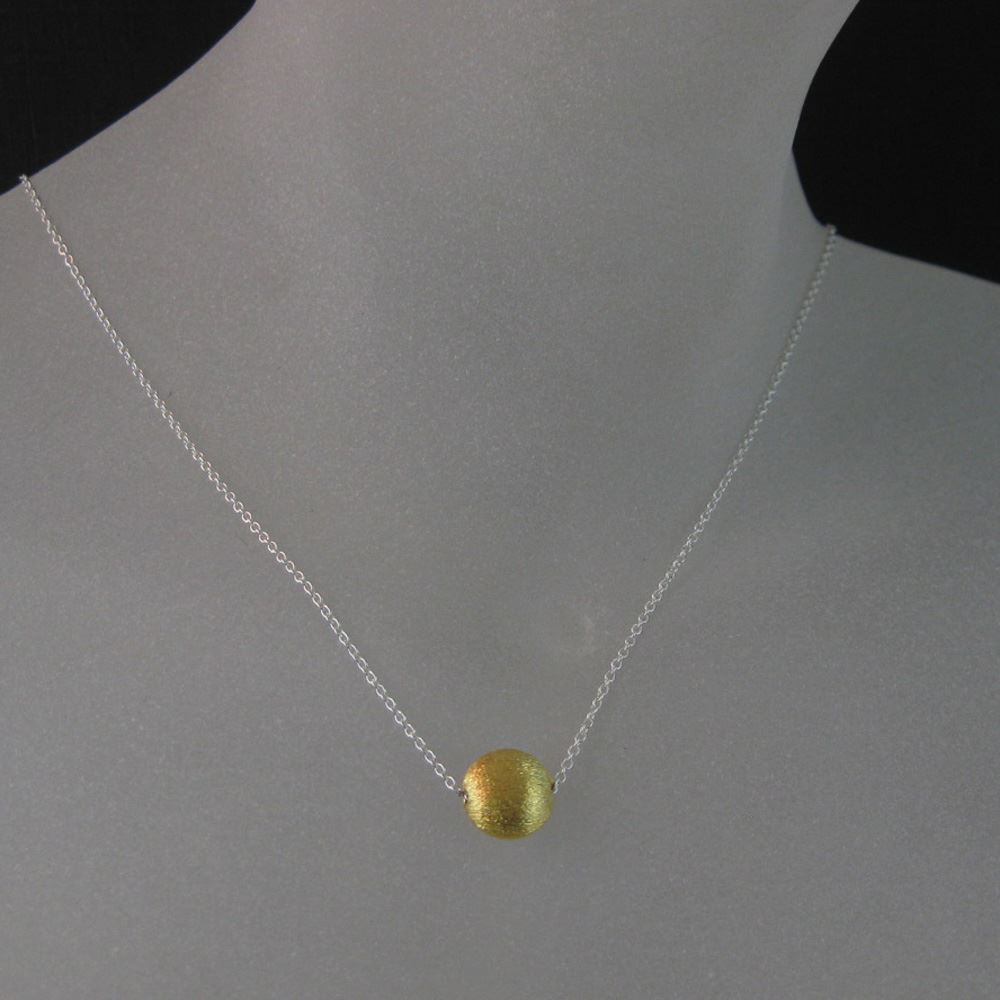 Price: per 1 necklaceMaterial: Chain: Solid Genuine .925 Sterling Silver. Charm: 18K Gold Plated Over Solid Genuine .925 Sterling Silver. Description: : Textured coin shape charm. Tiny plain cable link chain.Length: 16 to 24 inches. If you would like a different length please contact the seller. Charm Measurement: 8mm wide, 5mm thick, hole is 1.5mm wide.