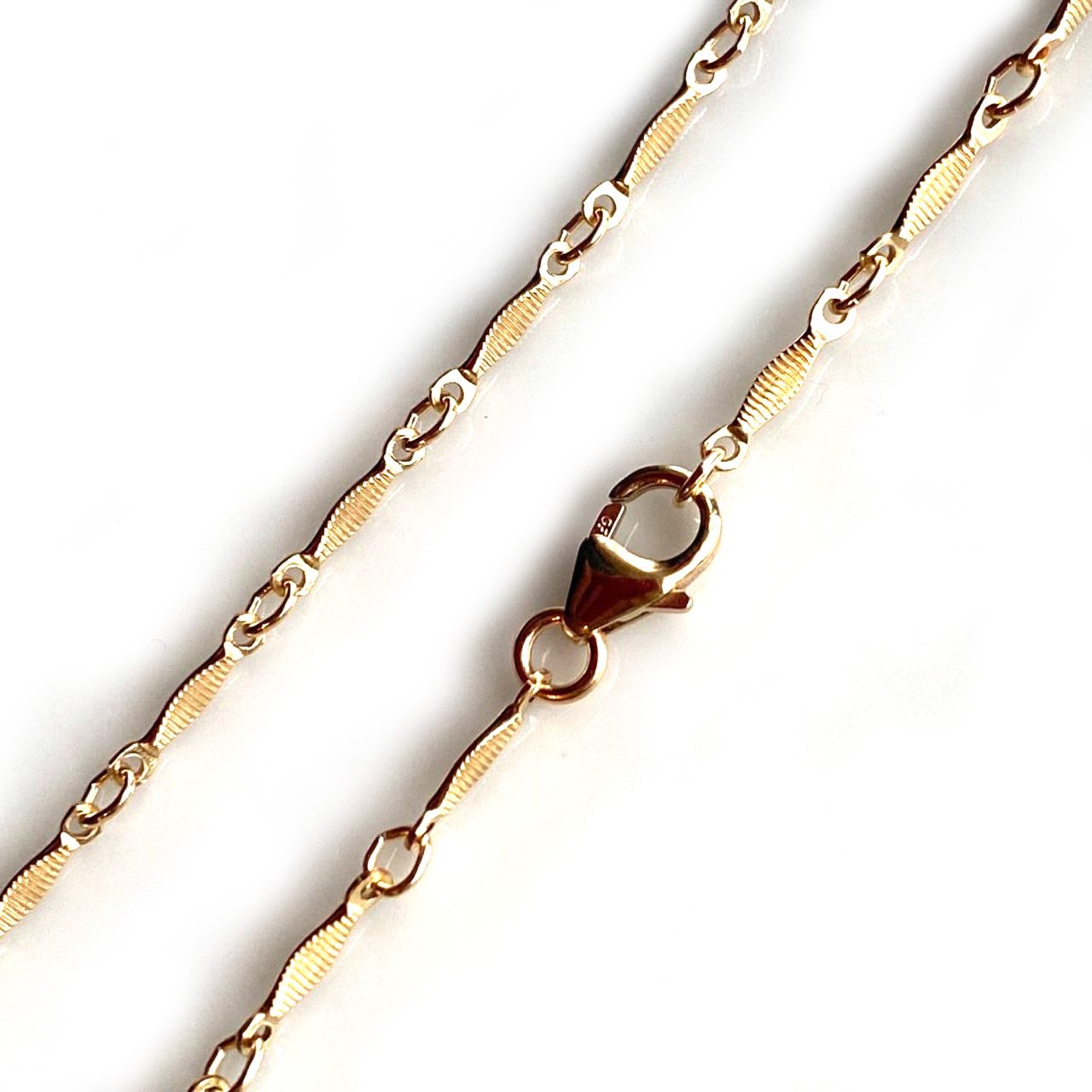 Custom wishlist OK Add to wishlist Add to compare list Sterling Silver Bulk Chain - 4mm Textured Bar Satellite Chain (Sold per foot) SKU : 101064 Textured Bar is 4mm x 2mm wide 12 Links per Inch - including 1 bar From $7.49 Add to cart