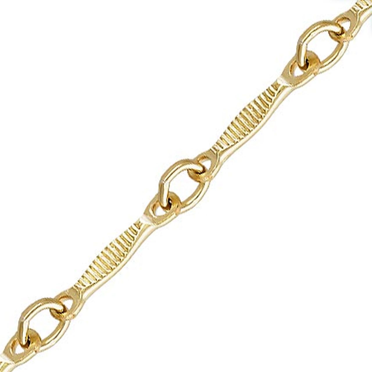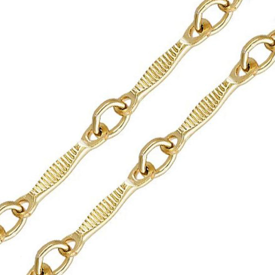 Add to compare list 1/20 Gold Filled Bulk Chain - 1.3mm Dapped Bar Chain(Sold per foot) SKU : 101067GF 8.5mm x 1.3mm Bar . 3 links and 2.5 bars per inch Log In for Wholesale Prices