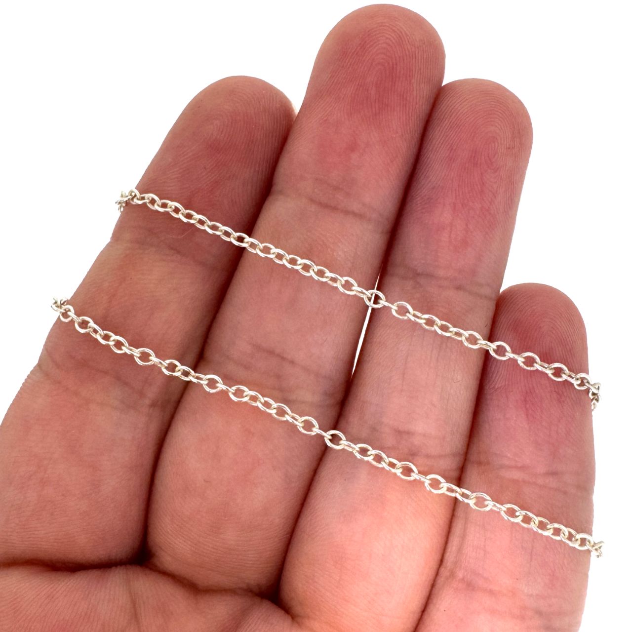 Add to compare list Sterling Silver Bulk Chain - 1.3x2mm Small Round Cable Chain (sold per foot) SKU : 101020 2mm long by 1.3mm wide 18 links per inch Log In for Wholesale Prices