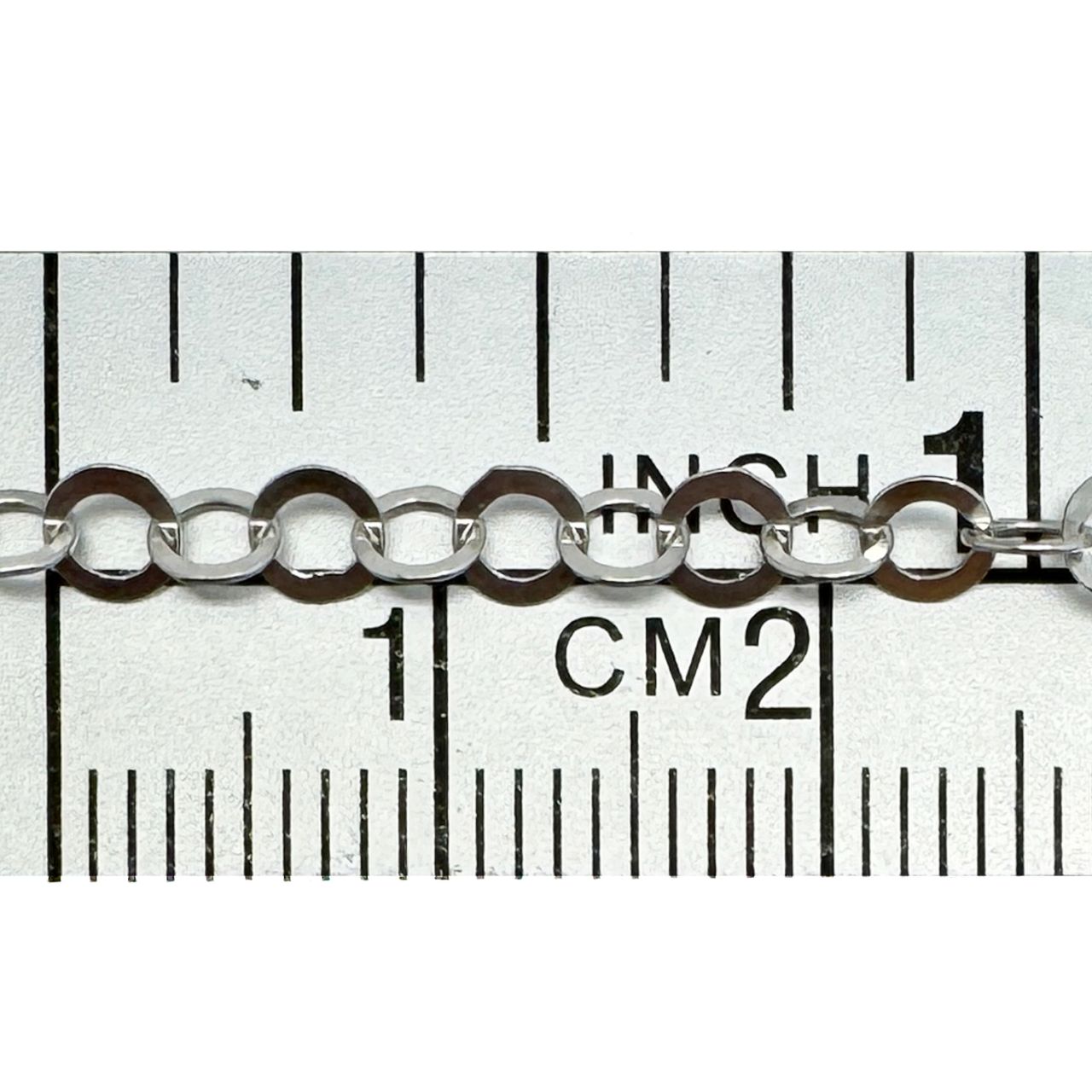 Add to compare list Sterling Silver Bulk Chain - 1.5x2mm Small Flat Cable Chain (sold per foot) SKU : 101021 OD-2mm long by 1.5mm wide 17 links per inch Log In for Wholesale Prices