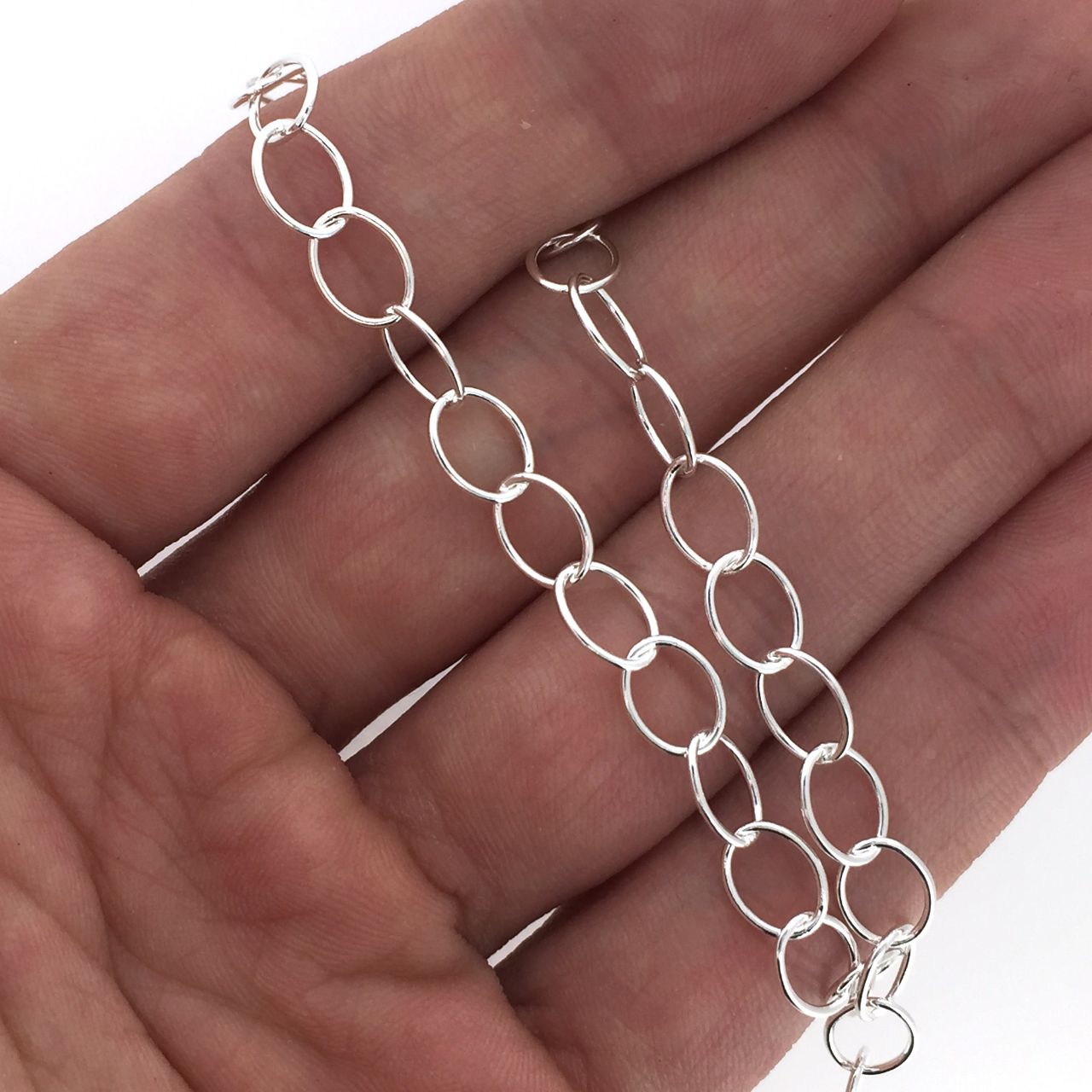 Add to compare list Sterling Silver Bulk Chain - 5.8x4.2mm Thick Round Oval Cable Chain (sold per foot) SKU : 101047 5.8mm x4.2mm 5 links per inch Log In for Wholesale Prices
