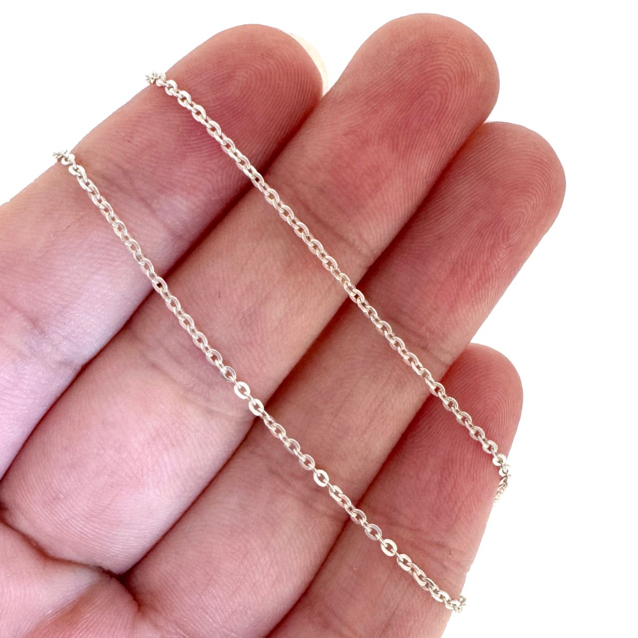 Custom wishlist OK Add to wishlist Add to compare list Sterling Silver Bulk Chain - 1.8x2.2mm Strong Round Cable Chain (sold per foot) SKU : 101019 OD-2.2mm long by 1.8mm wide 16 links per inch. From $5.56 Add to cart