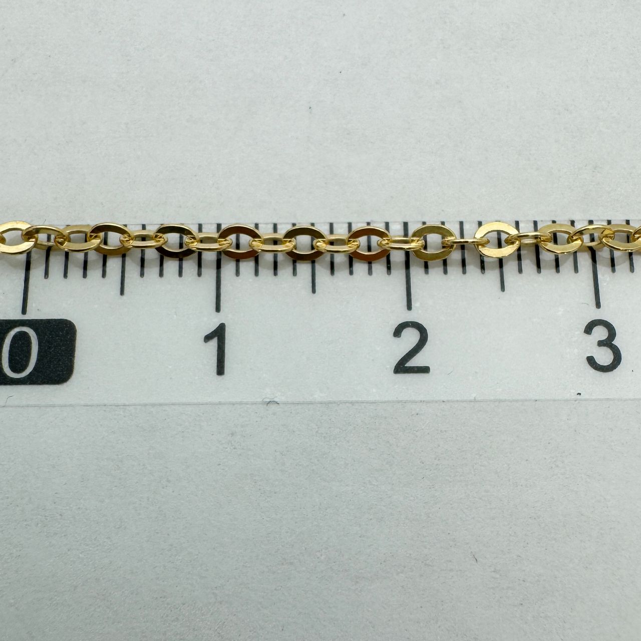 Add to compare list Gold Over Sterling Silver Chain - Flat Cable Oval Bulk Chain (Sold Per Foot) SKU : 101043-VM 1.8mm x 1.5mm 18 links per inch Log In for Wholesale Prices