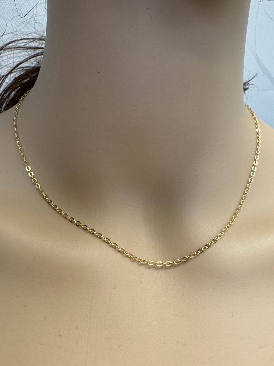 Add to compare list Gold Over Sterling Silver Finished Chain - Strong Flat Cable Chain SKU : 601051-VM Lengths: 7"-36" links are 2.4mm x 2mm wide. Log In for Wholesale Prices