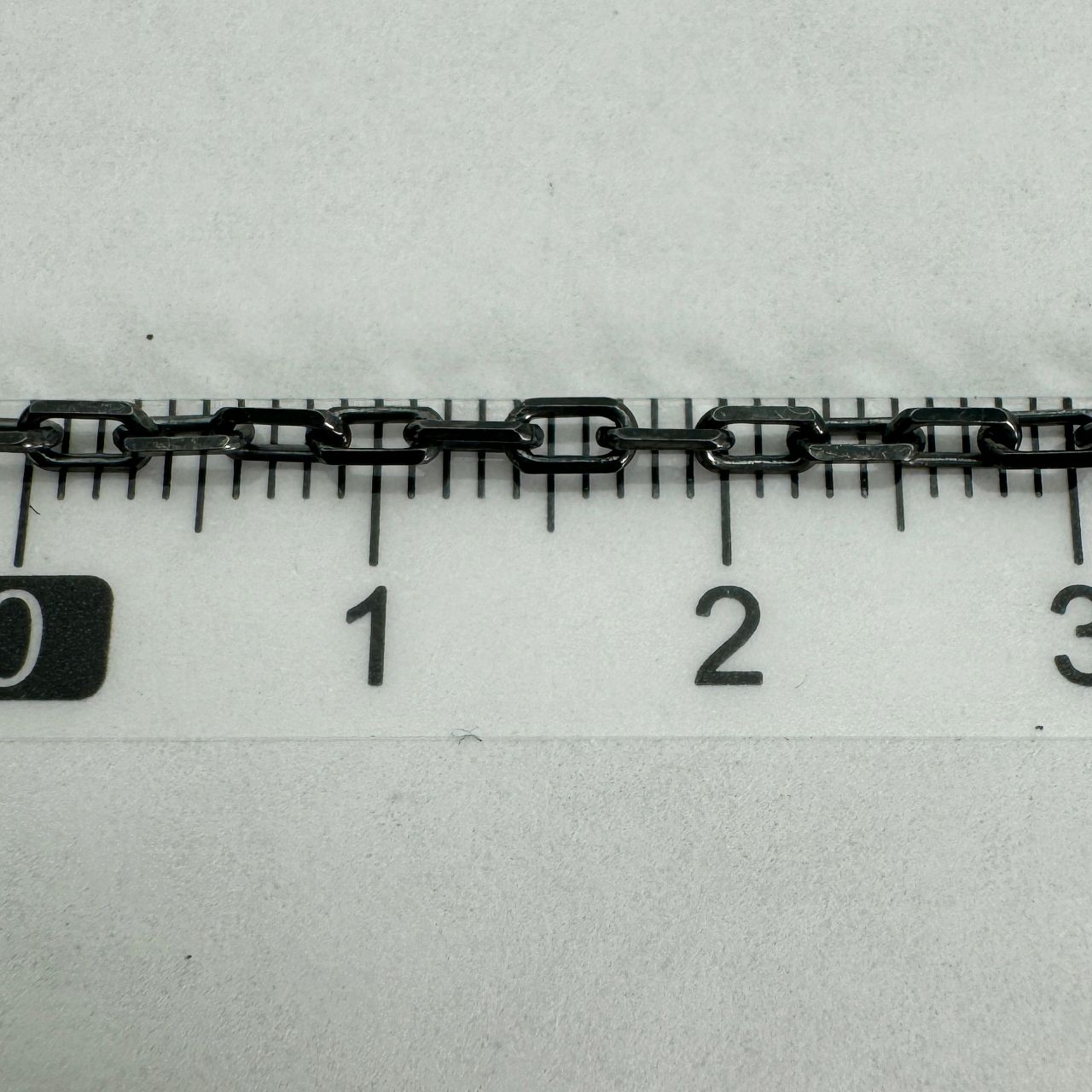 Add to compare list Oxidized Sterling Silver Bulk Chain - 1.5x2mm Small Flat Cable Chain (sold per foot) SKU : 101021-OX OD-2mm long by 1.5mm wide 17 links per inch Log In for Wholesale Prices