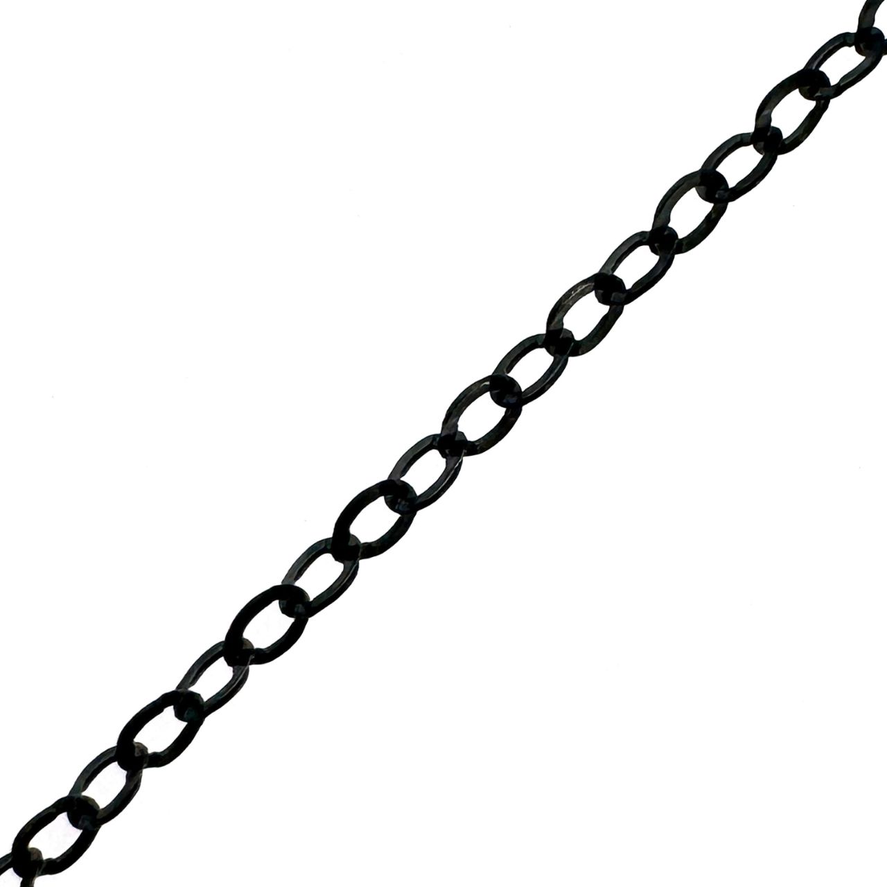 Custom wishlist OK Add to wishlist Add to compare list Oxidized 925 Italian Sterling Silver Finished Chain - 2.5mm Flat Oval Cable Chain SKU : 601022OX Shiny Dark Black Color Lengths: 7" - 36" $4.85 Add to cart