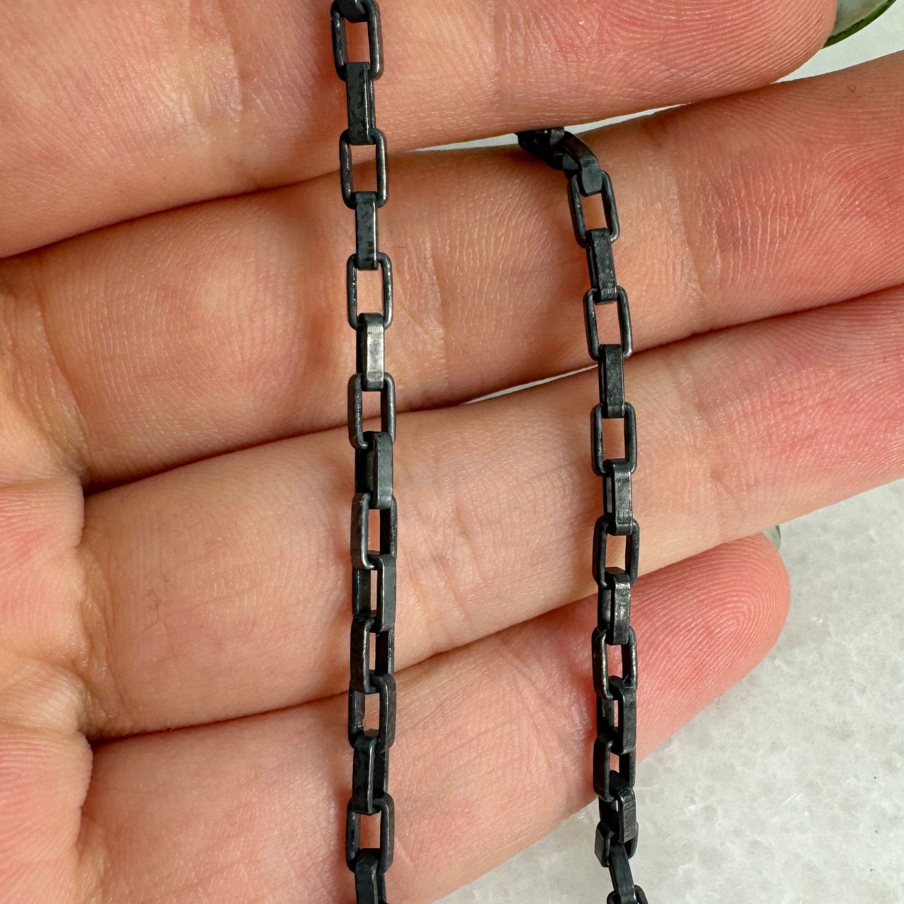 Add to compare list Oxidized 925 Sterling Silver Finished Jewelry Chain - Heavy Long Box Chain SKU : 601040OX Lengths: 7"-36" Log In for Wholesale Prices