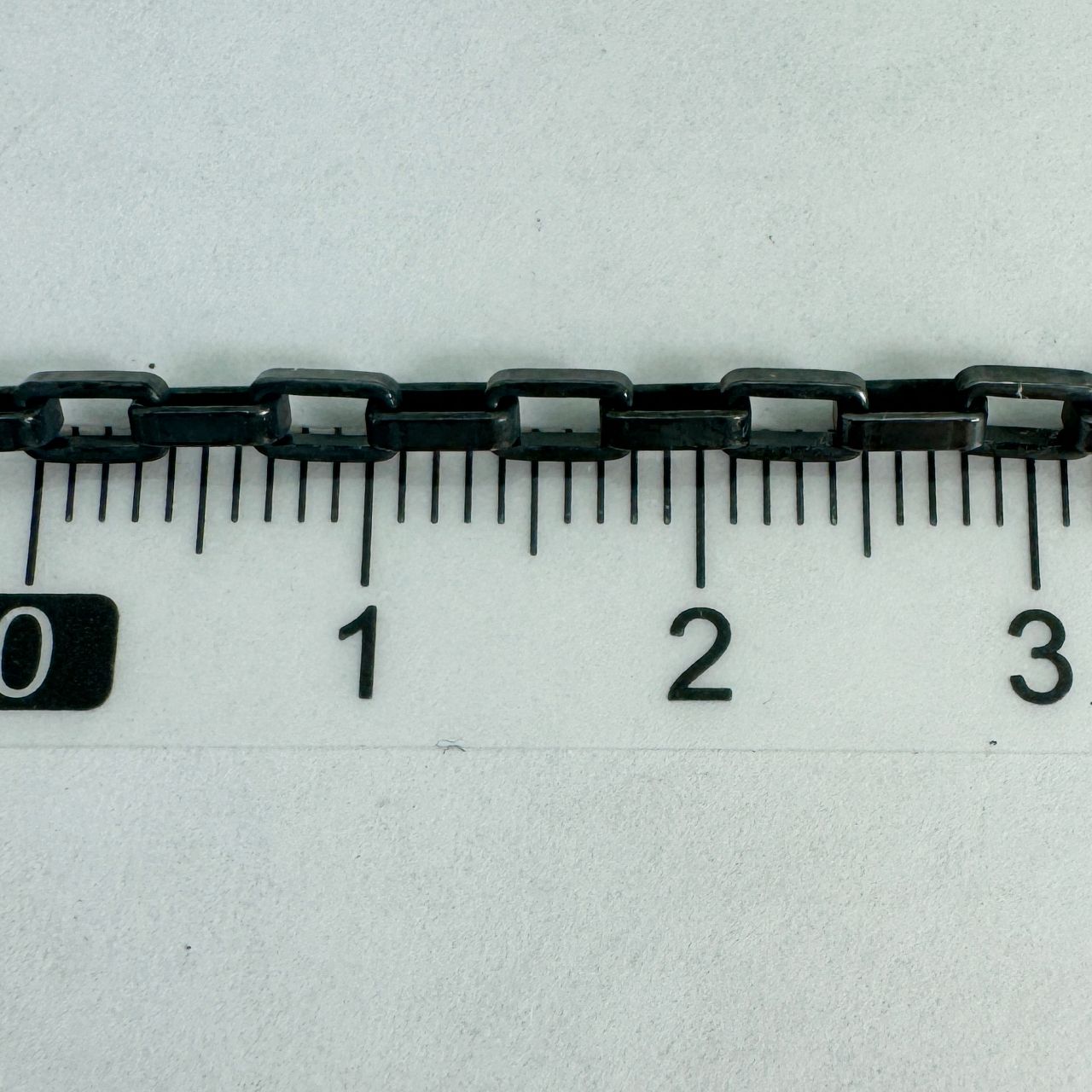 Add to compare list Oxidized Sterling Silver Bulk Chain - 4 by 2mm Diamond Cut Box Chain (Sold by foot) SKU : 101041-OX 4mm x 2mm 9 links per inch Log In for Wholesale Prices