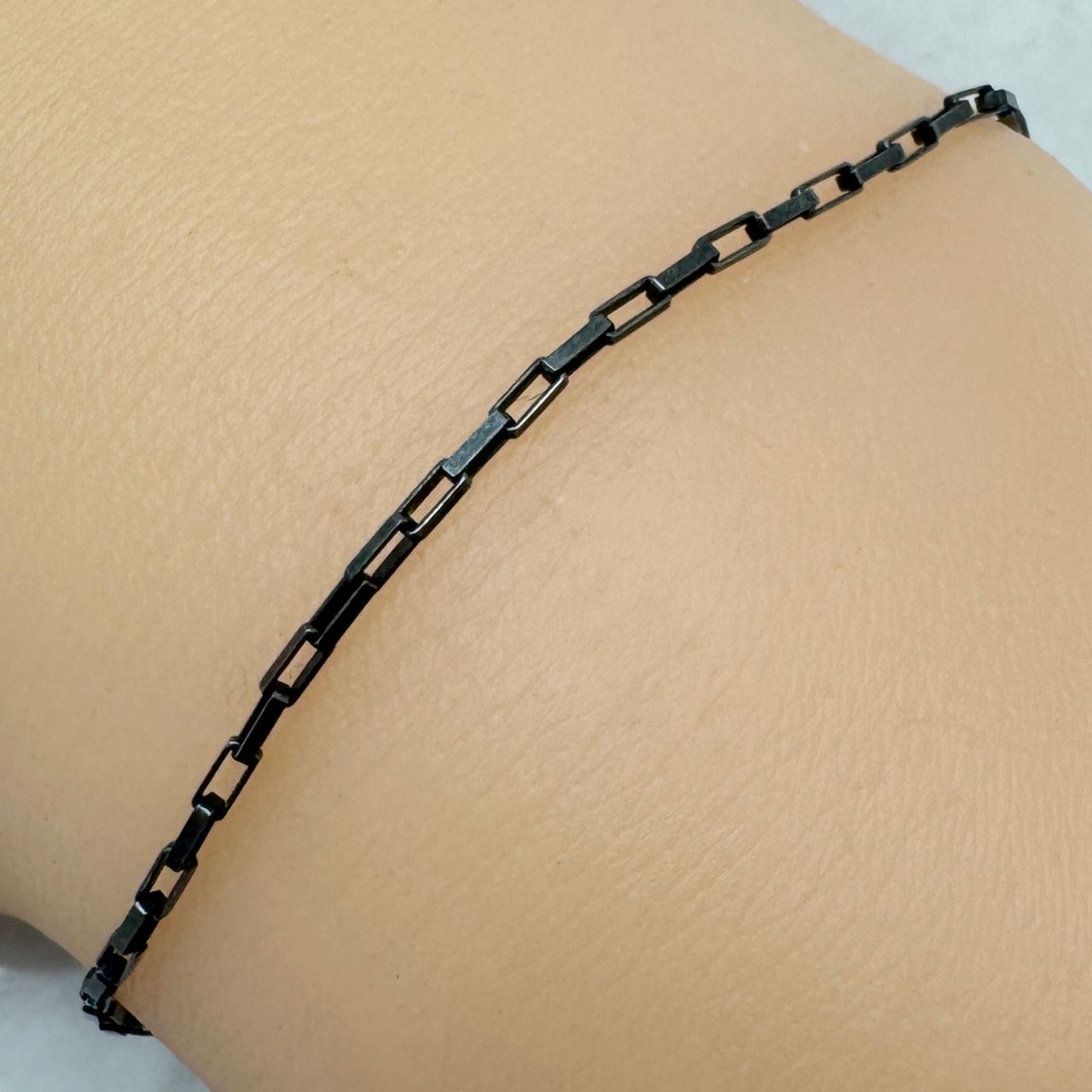 Custom wishlist OK Add to wishlist Add to compare list Oxidized Sterling Silver Bulk Chain - 4x1.8mm Long Box Chain (sold by the foot) SKU : 101031-OX 4mm x 1.5mm 8 links per inch From $8.73 Add to cart
