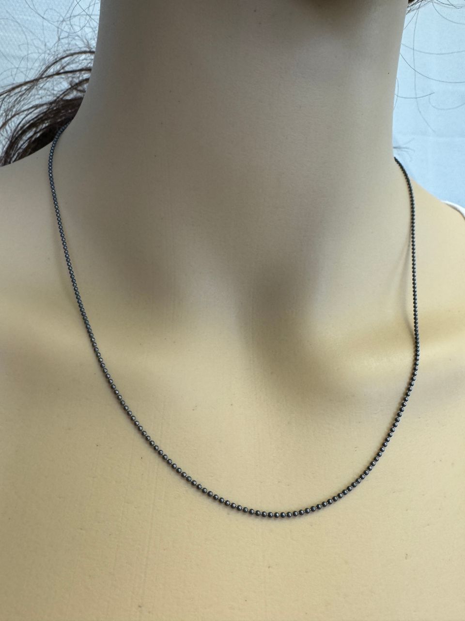 Add to compare list Oxidized Sterling Silver Finished Jewelry Chain - 1.2mm Ball Chain - All Sizes SKU : 601050OX Lengths: 7" - 36", Balls are 1.2mm Log In for Wholesale Prices