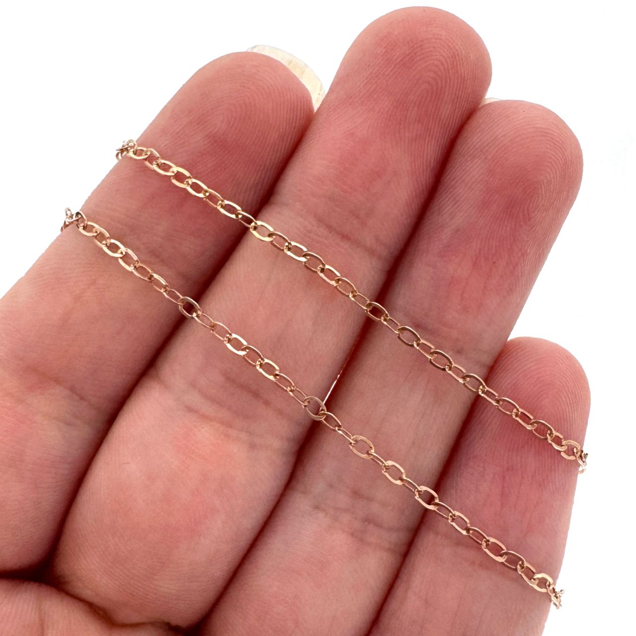Custom wishlist OK Add to wishlist Add to compare list 1/20 14K Gold Filled Small Flat Cable Chain 1.7mm by 2mm (sold per foot ) SKU : 101022GF OD-2mm long by 1.7mm wide 16 links per inch From $7.30 Add to cart