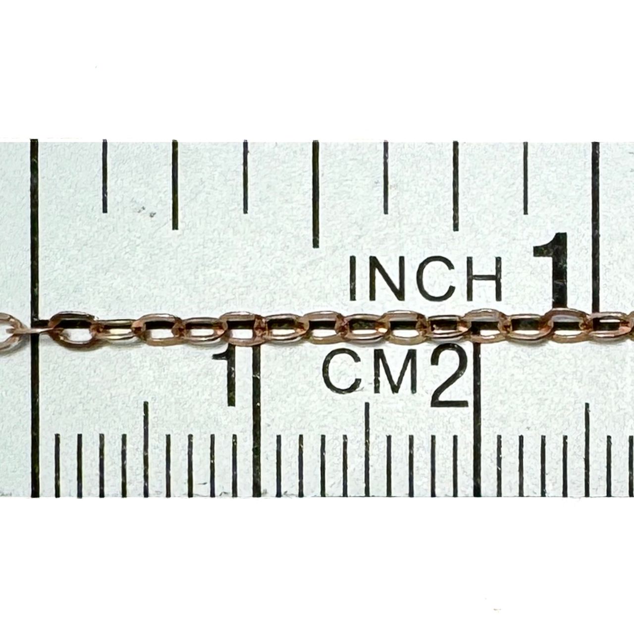 Custom wishlist OK Add to wishlist Add to compare list Rose Gold Plated 925 Sterling Silver Bulk Chain - 1.5x2mm Small Flat Oval Cable Chain (sold per foot) SKU : 101021-RG OD-2mm long by 1.5mm wide 17 links per inch From $2.82 Add to cart