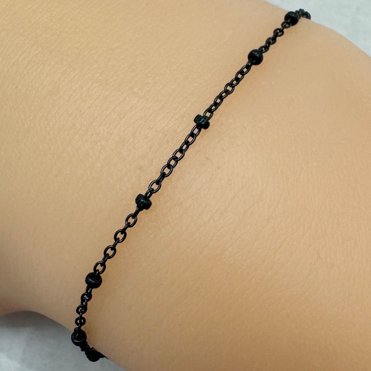 Custom wishlist OK Add to wishlist Add to compare list Oxidized Sterling Silver Finished Chain - Cable Beaded Satellite Chain SKU : 601006-OX Lengths: 7.5" - 36", links are 1.02mm by 1.2mm, ball is 1.73mm $8.50 Add to cart