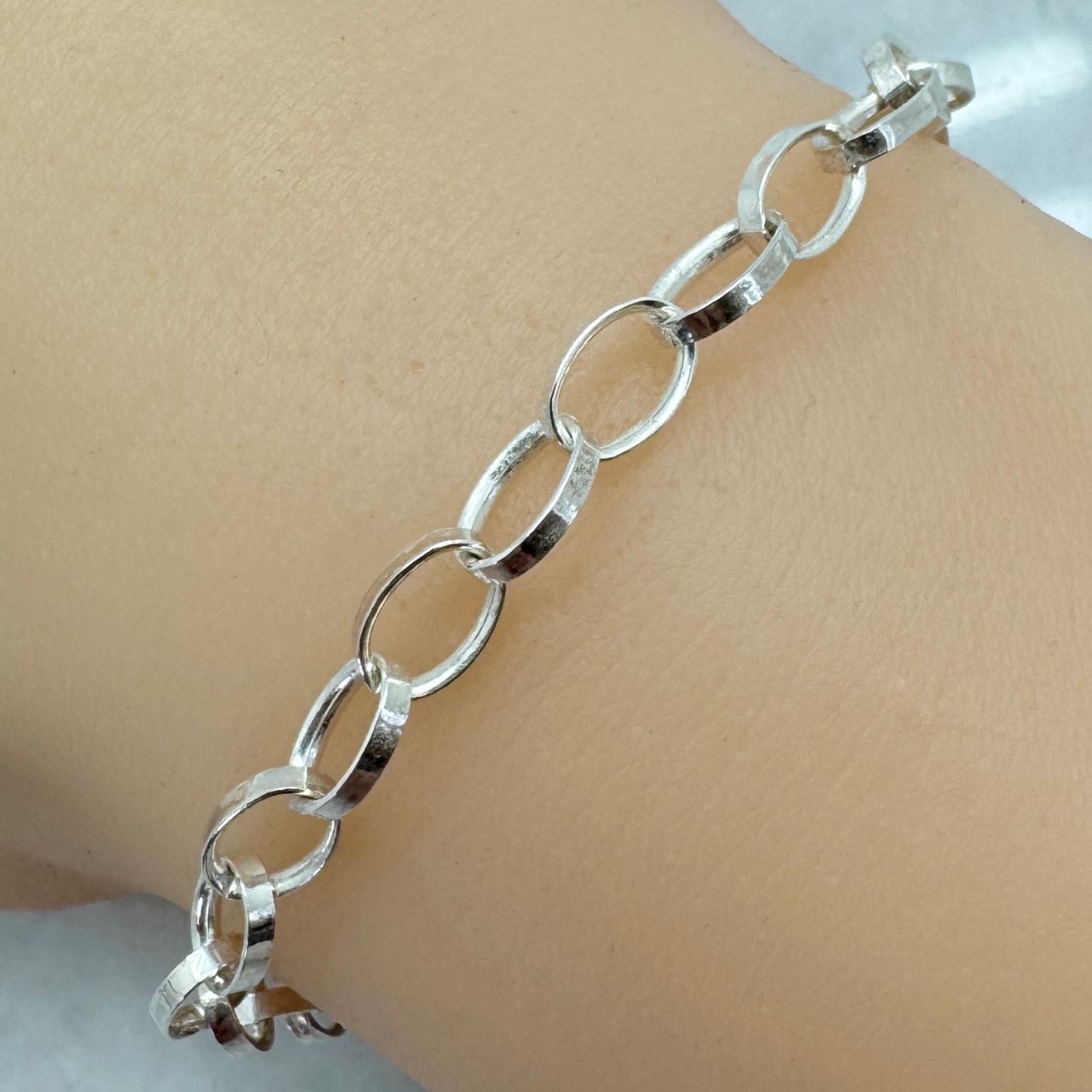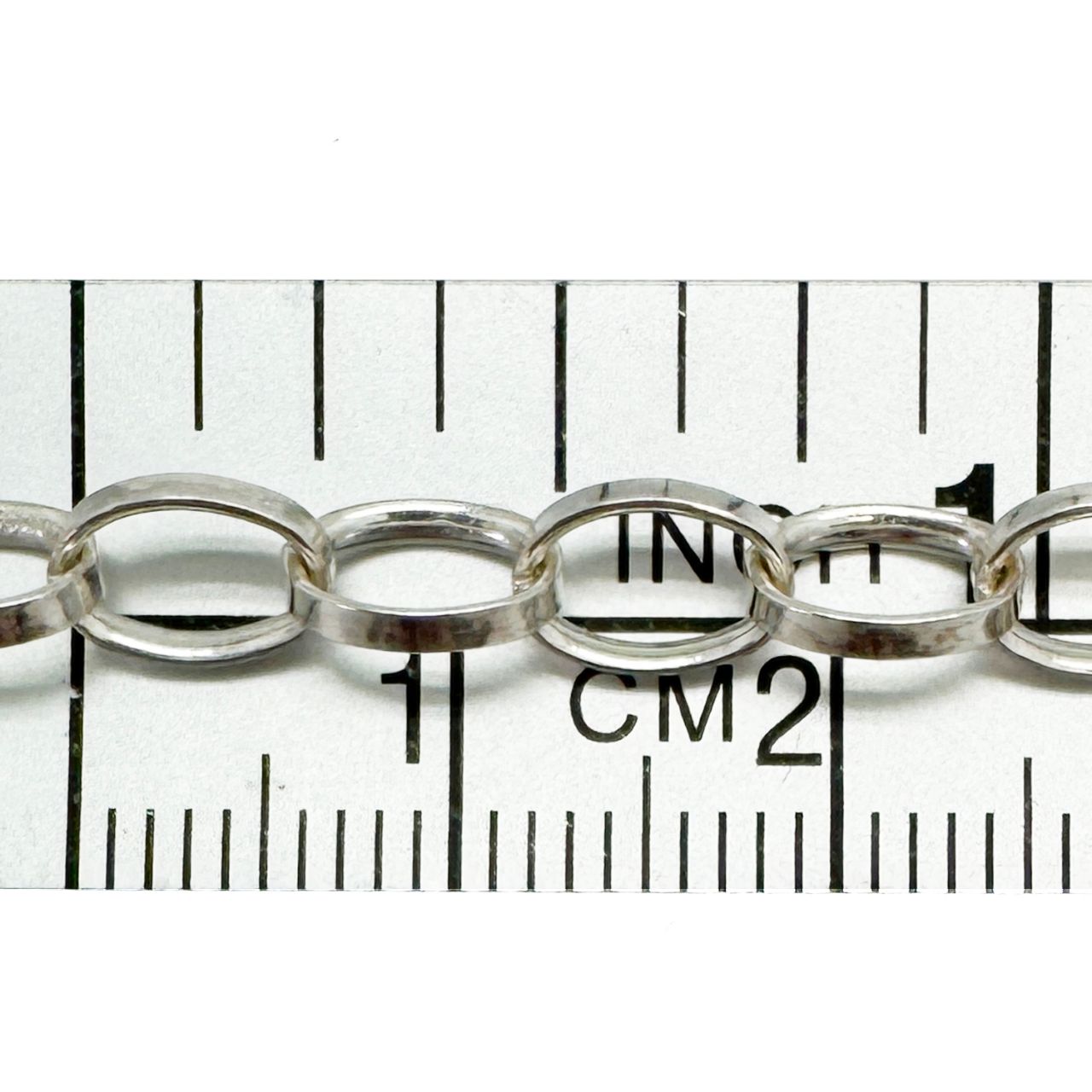 Custom wishlist OK Add to wishlist Add to compare list Sterling Silver Finished Chain - Chunky Flat Oval Rolo Chain SKU : 601004 Lengths: 7" - 36", link size is 5mm by 7.2mm. Perfect as a charm bracelet! $22.00 Add to cart