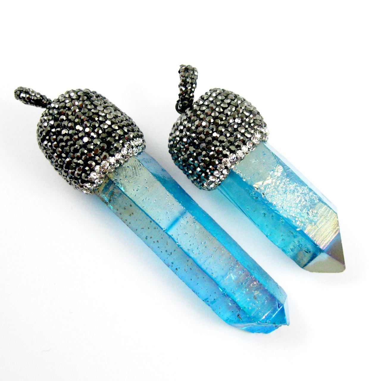 Custom wishlist OK Add to wishlist Add to compare list Natural Aura Quartz Tri Crystal Pave Pendant - Tri Pendulum Spike Pendant - Yellow Crystal- 45mm SKU : 292073-YEL $7.00 $4.90 Add to cart