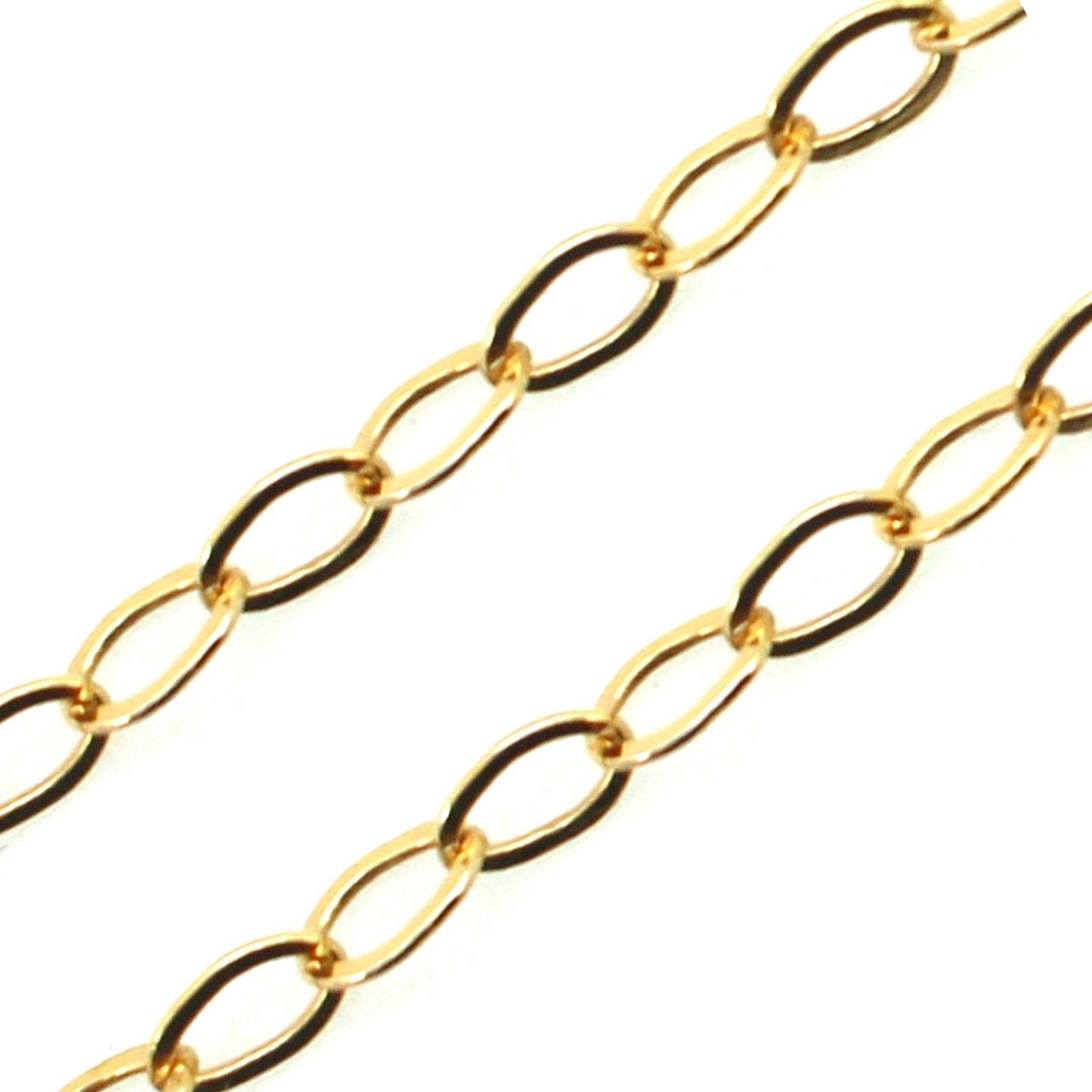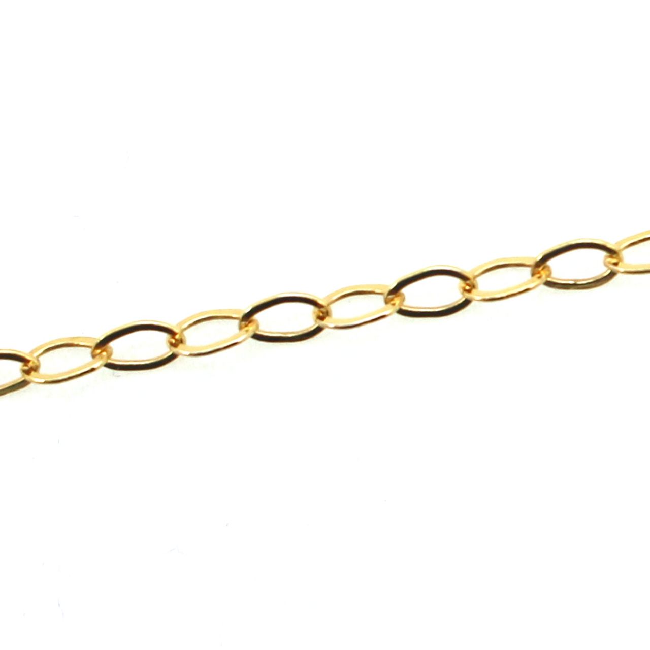 Custom wishlist OK Add to wishlist Add to compare list 1/20 14k Gold Filled Flat Oval Cable Chain 5.5x7.6mm - Bulk Unfinished Chains - (sold per foot) SKU : 101010GF OD-7.6mm Long by 5.5mm Wide 4 links per inch From $31.24 Add to cart