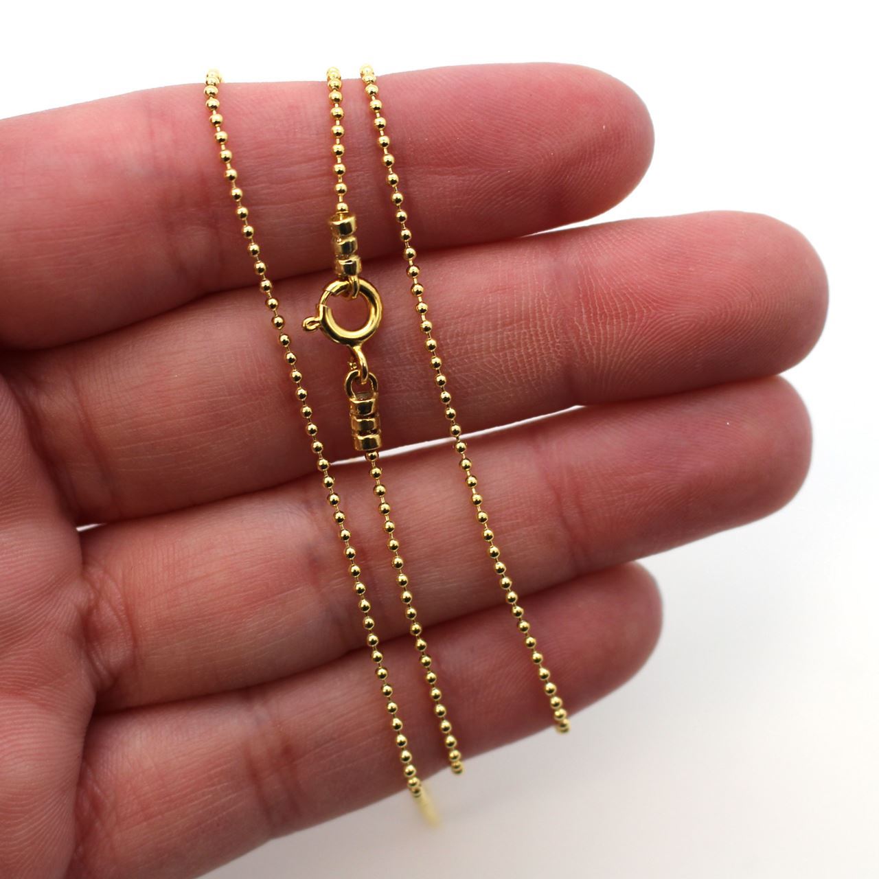 Add to compare list Gold Over Sterling Silver Finished Chain - Cable Beaded Satellite Chain SKU : 601006-VM Lengths: 7" -36" links are 1.02x1.2mm, balls are 1.73mm Log In for Wholesale Prices