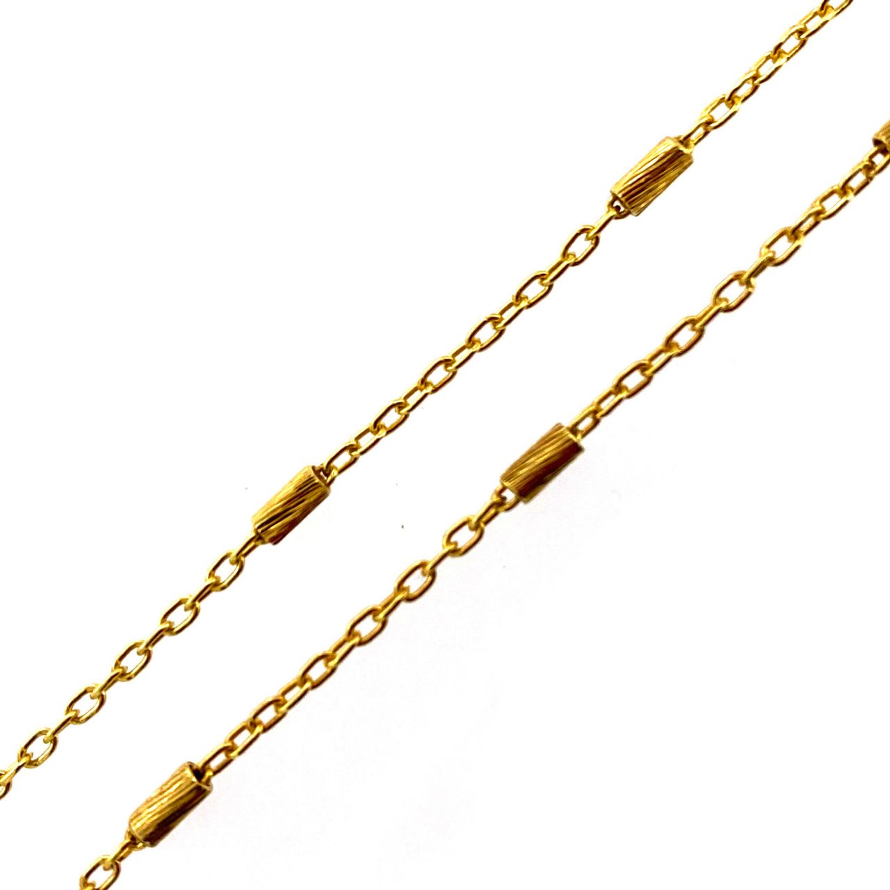 Custom wishlist OK Add to wishlist Add to compare list 1/20 Gold Filled Bulk Chain - 1.3mm Dapped Bar Chain(Sold per foot) SKU : 101067GF 8.5mm x 1.3mm Bar 3 links and 2.5 bars per inch From $17.00 Add to cart