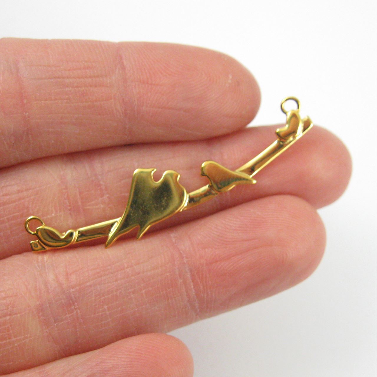Shape: Two adult birds and one baby bird perched on a gold bar (Parents and child, guardians and child)