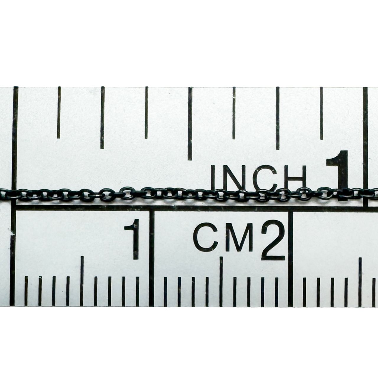 Custom wishlist OK Add to wishlist Add to compare list Oxidized Sterling Silver Bulk Chain - 1.3x1.5mm Solid Flat Cable Chain (sold per foot) SKU : 101029-OX OD-1.5mm long by 1.3mm wide 27 links per inch Shiny Black Color From $4.95 Add to cart