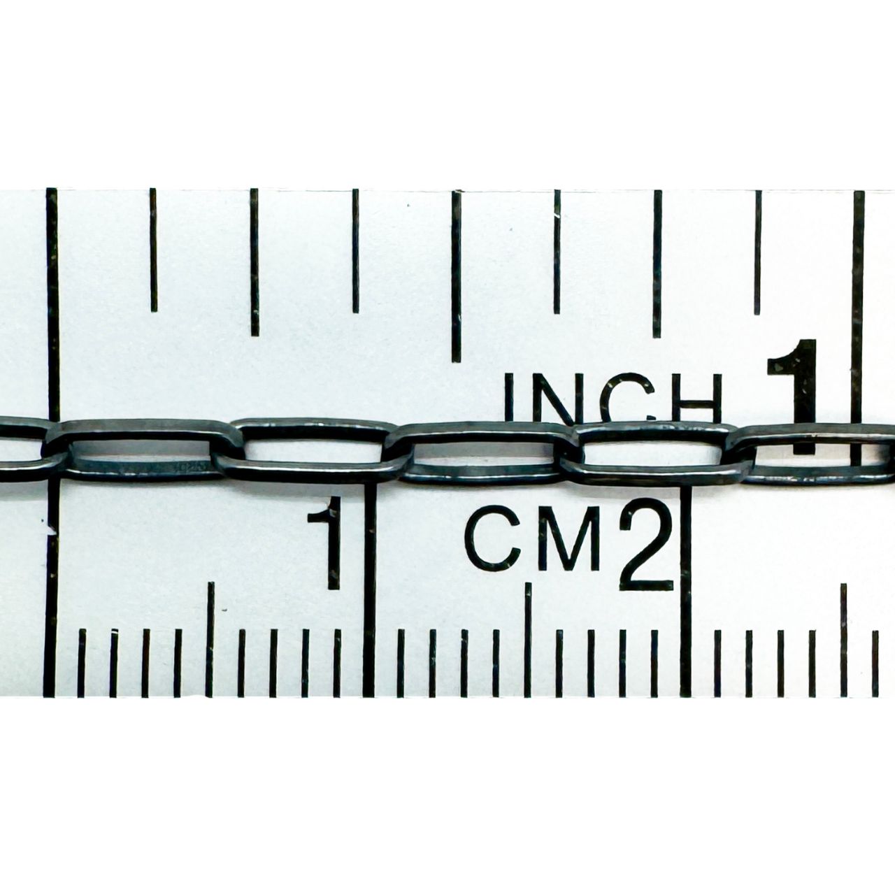Custom wishlist OK Add to wishlist Add to compare list Oxidized Sterling Silver Bulk 1.8x2.2mm Strong Round Cable Chain (sold per foot) SKU : 101019-OX Shiny Dark Black Color OD-2.2mm long by 1.8mm wide 16 links per inch. From $6.05 Add to cart
