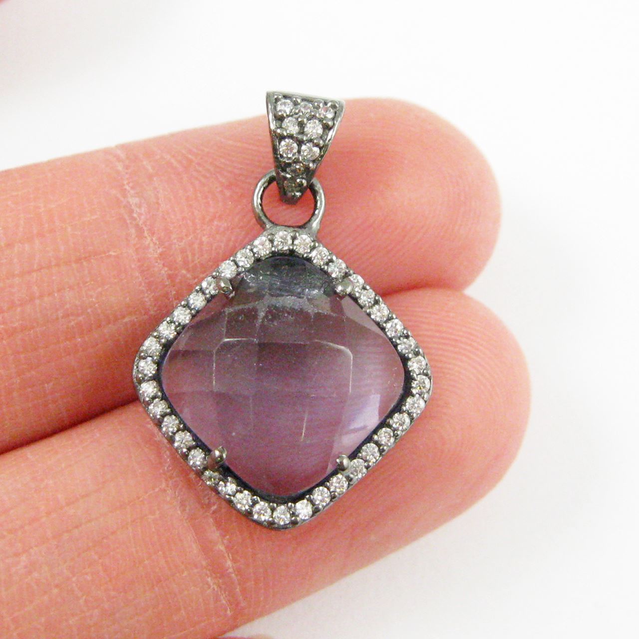 Custom wishlist OK Add to wishlist Add to compare list Oxidized Sterling Silver Cubic Zirconia Pave Bezel Gemstone Pendant - 17mm Diamond Shape Faceted Stone - Moonstone SKU : 201152-MST $8.55 Add to cart