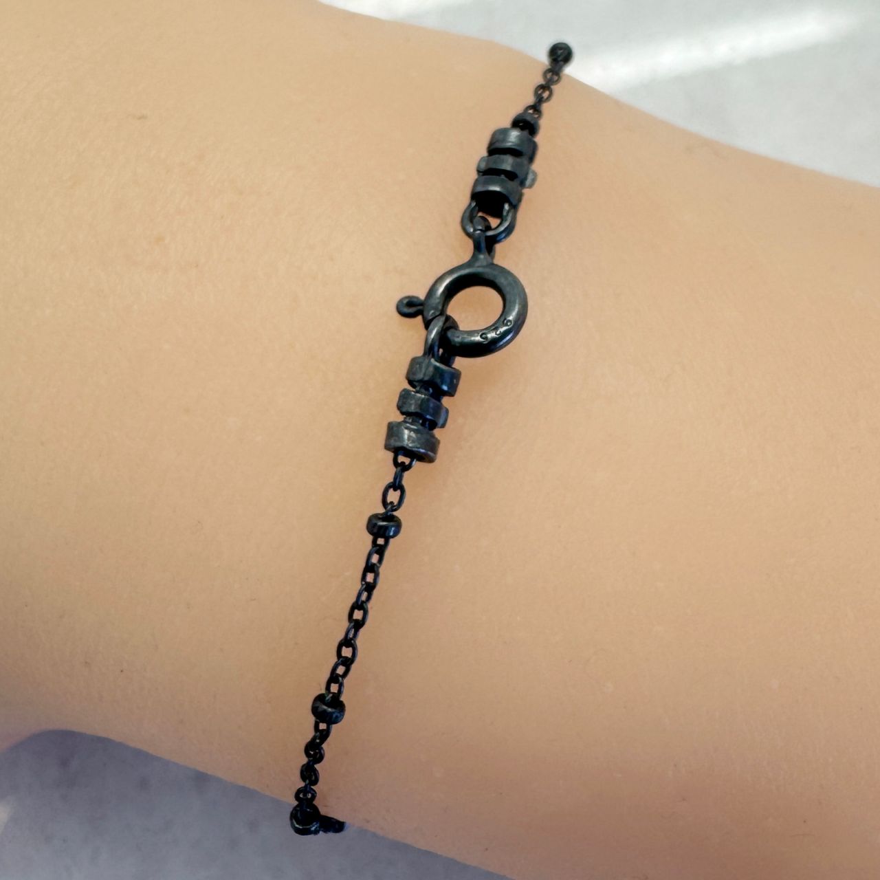 Custom wishlist OK Add to wishlist Add to compare list Oxidized Sterling Silver Finished Chain - 3mm Ball Satellite Cable Chain SKU : 601049OX Lengths: 7" - 36" $12.00 Add to cart