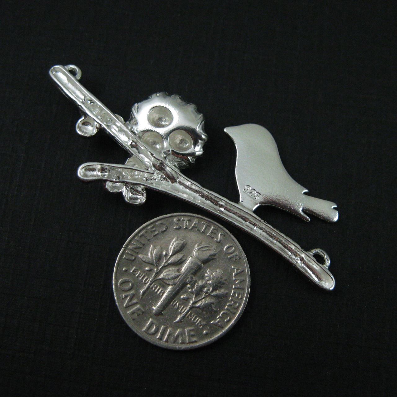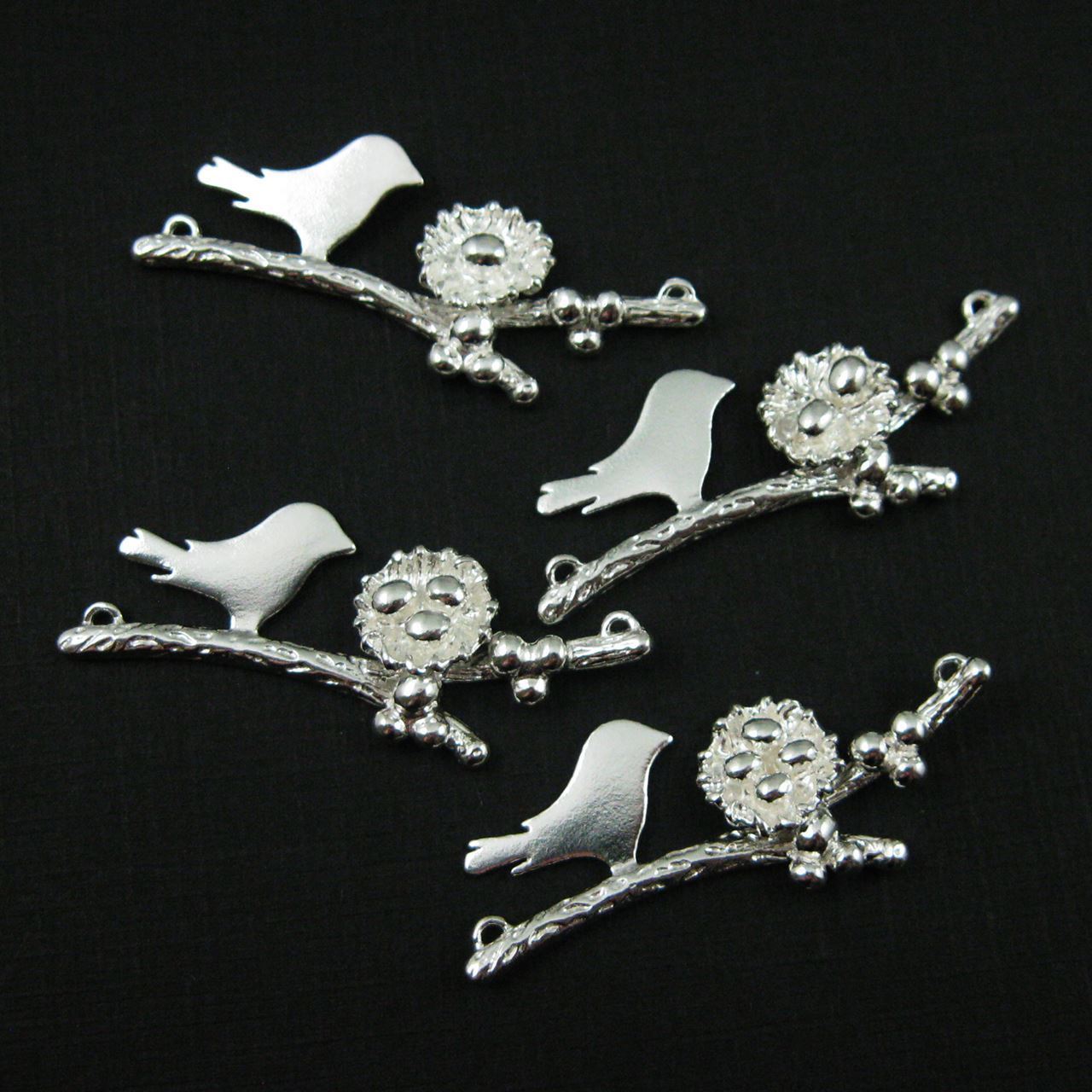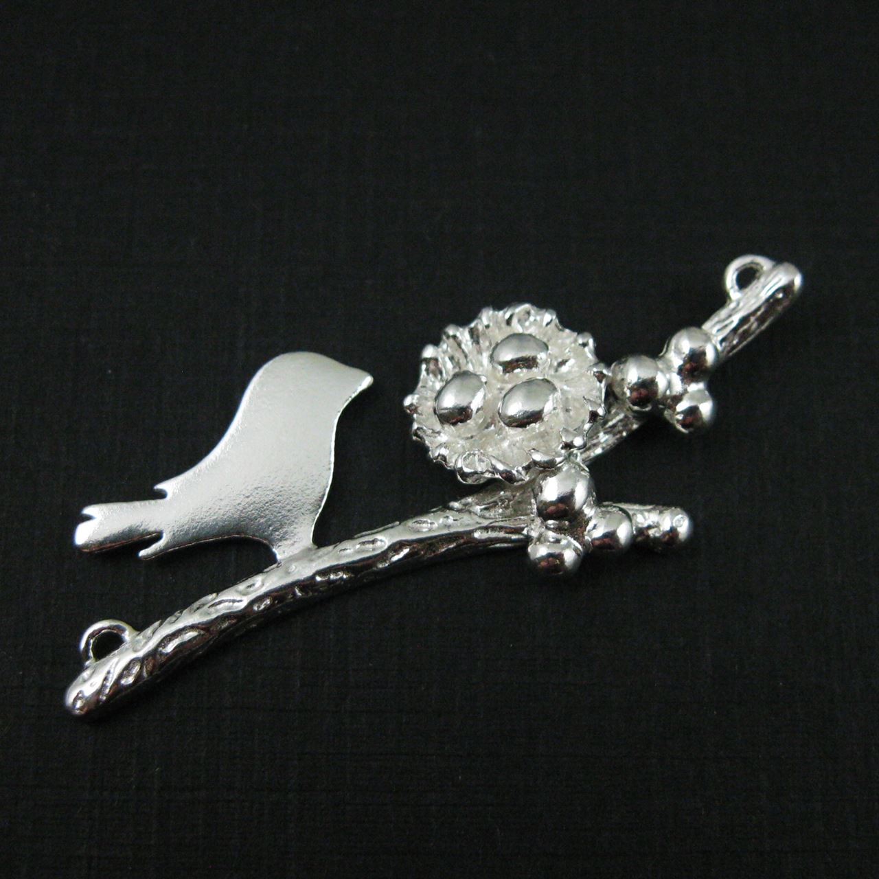 Material: Solid Genuine .925 Sterling Silver. Shape: One adult bird is perched on a branch with a nest of egg (3 eggs)Measurement: 48.4mm long, 17mm long, 5mm thick. Connector rings can fit 22 gauge 0.6 mm rings/wire/chain. Weight: 4.5 grams per piece.