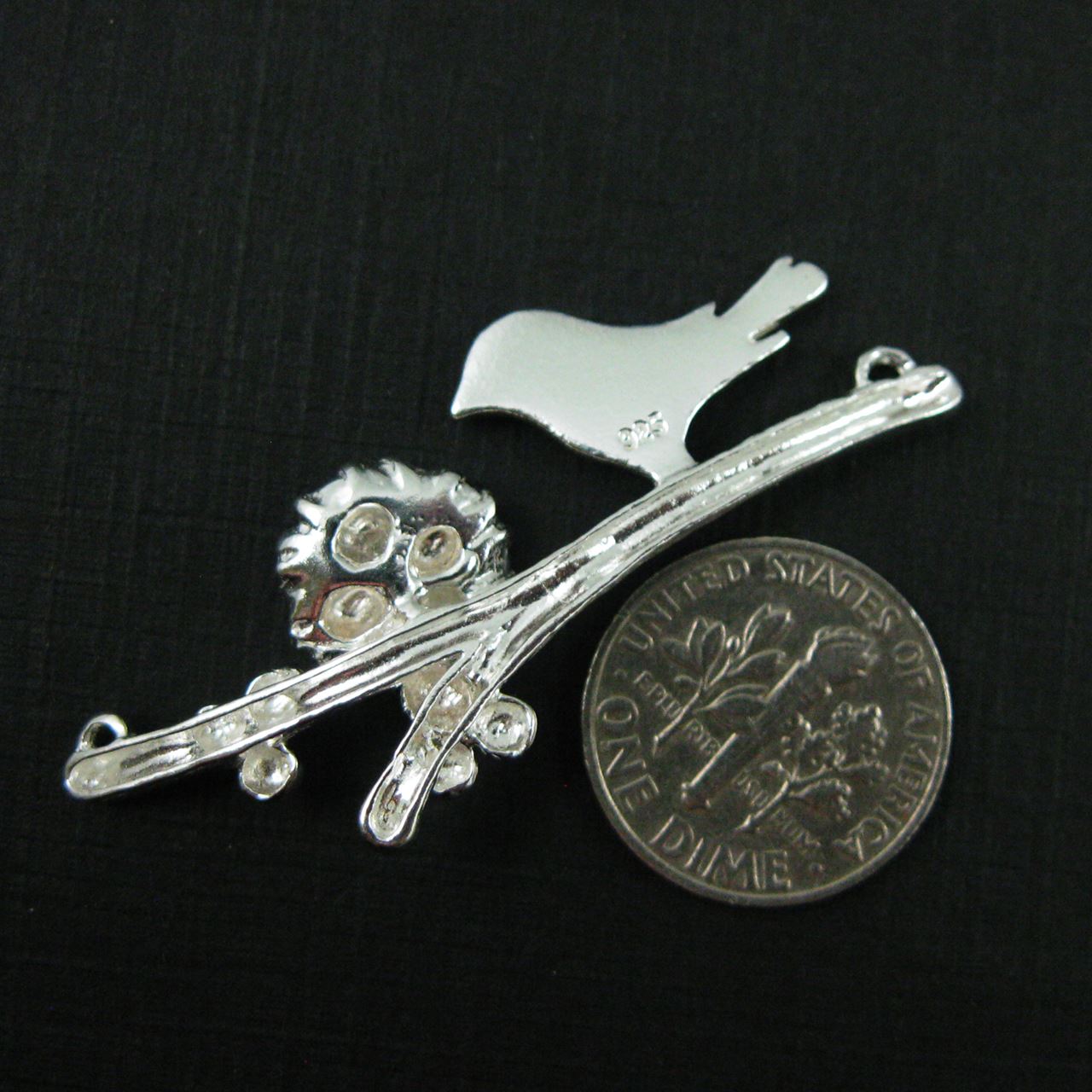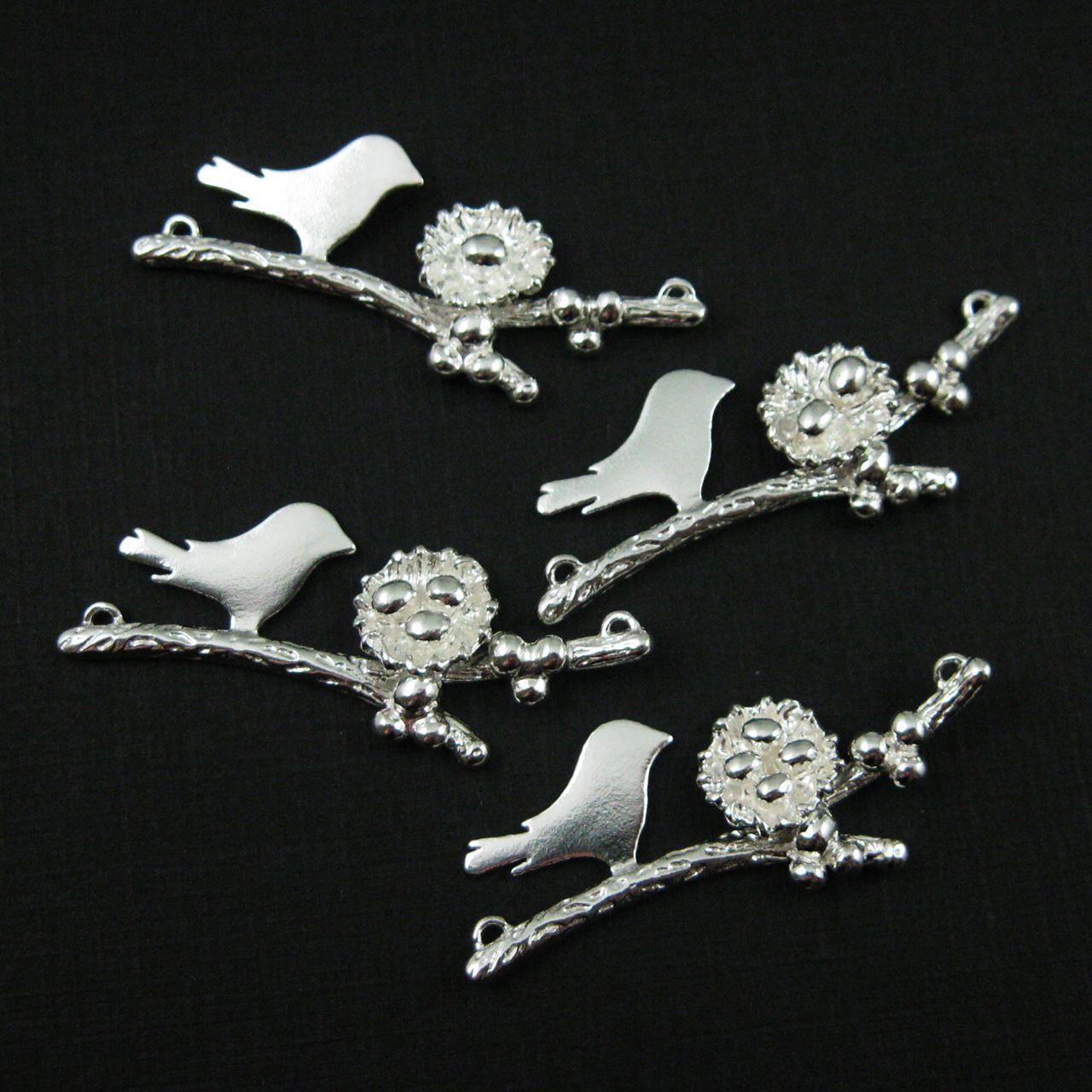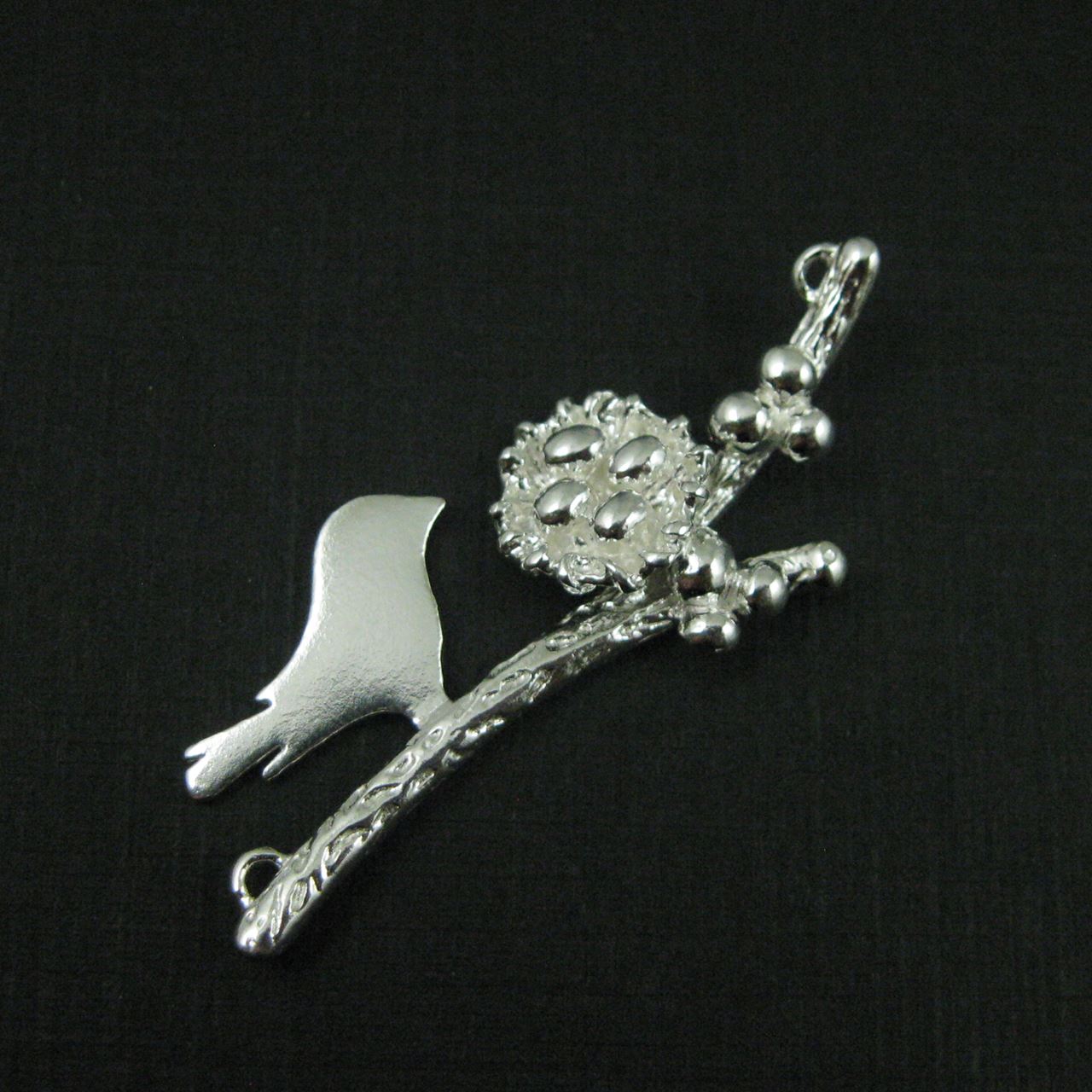 Material: Solid Genuine .925 Sterling Silver. Shape: One adult bird is perched on a branch with a nest of egg (4 eggs)Measurement: 48.4mm long, 17mm long, 5mm thick. Connector rings can fit 22 gauge 0.6 mm rings/wire/chain. Weight: 4.5 grams per piece.