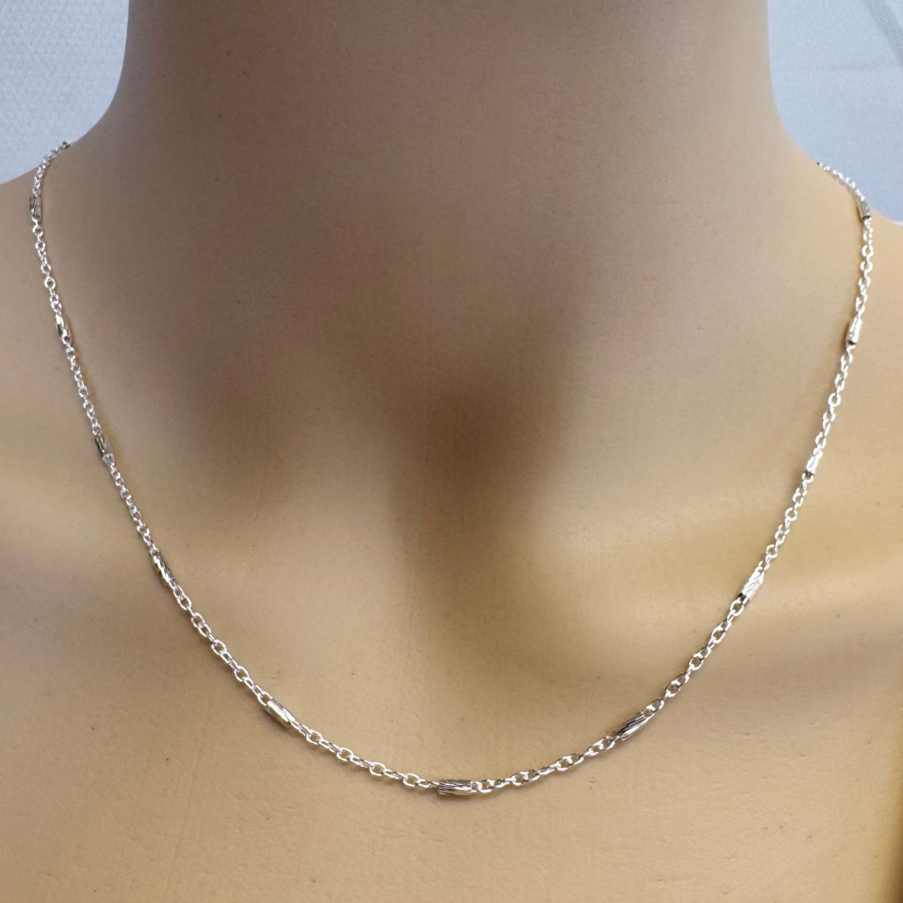 Add to compare list Sterling Silver Finished Chain- 4mm Textured Bar Satellite Chain SKU : 601064 Available Lengths: 7" - 36" Log In for Wholesale Prices