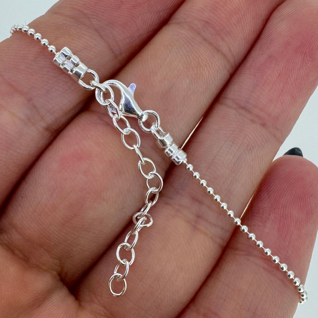Custom wishlist OK Add to wishlist Add to compare list Sterling Silver Bulk Chain- 1.2mm Beaded Ball Chain (Sold Per Foot) SKU : 101050 Ball: 1.2mm 16.5 balls per inch From $5.32 Add to cart
